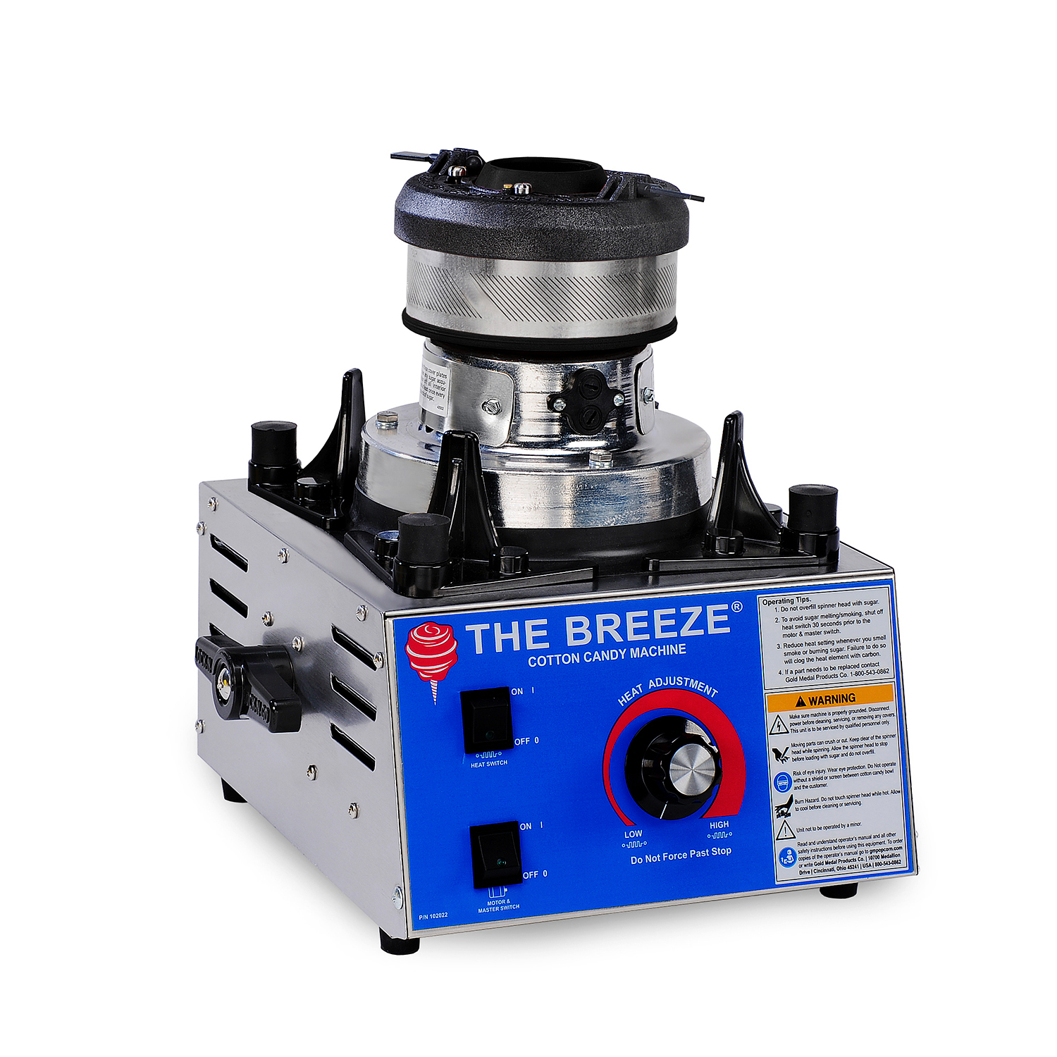 These machines offer a way to differentiate yourself from your competitors and gain the advantage in the market in a totally new way! The only UL Sanitation and UL Safety certified floss head on the market is available with the Breeze® EZ Kleen Head #3030-00-001. This cotton candy machine features molded rubber floaters and snap-in-place retainer to hold everything together. No tools required for assembly making it user-friendly. Now also included, the new style Lock-N-Go handles, redesigned bell housing sugar seal, bowl positioning brackets and flip down front door for easy serviceability. This cotton candy machine is perfect or restaurants, schools and candy stores.